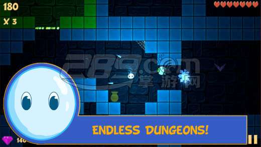 玩家不仅可以通过收集宝石可以解锁多达 25 个人物进行游戏,而且每个地牢都是独一无二完全随机的,当然 BOSS 也是随机出现,所以每次出现都要记好它们的技能和特点了。除了 BOSS 之外,连小怪也有将近 50 种不同类型,看来主角的探寻宝藏之路真是困难重重。不过小精灵也可通过探索,得到护盾、伤害和吸收宝石的三种技能,帮助通关。