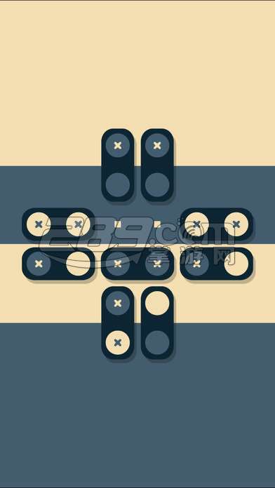 进入游戏后你会发现我们的挑战场景被分割成不同颜色,与之对应的是砖块上会携带特定颜色的圆点。玩家要做的就是通过点与滑的操作,让这些砖块在有限的空间内腾转挪移,将它们携带的圆点送到与之颜色匹配的区域内,达成所有目标后方可过关。